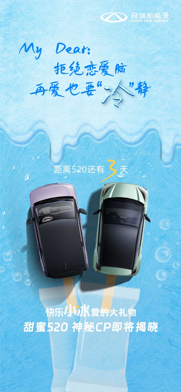520在即,前方高甜预警!让快乐小冰成功“脱单”的神秘CP究竟是谁?两位主角又将为我们带来怎样的甜蜜和惊喜?一切答案尽在5月20日奇瑞新能源官方直播间,快乐小冰X神秘CP邀你锁定直播间,共同见证赤忱热烈的告白宣言,开启今年夏天最快乐的冰爽自“游”之旅!