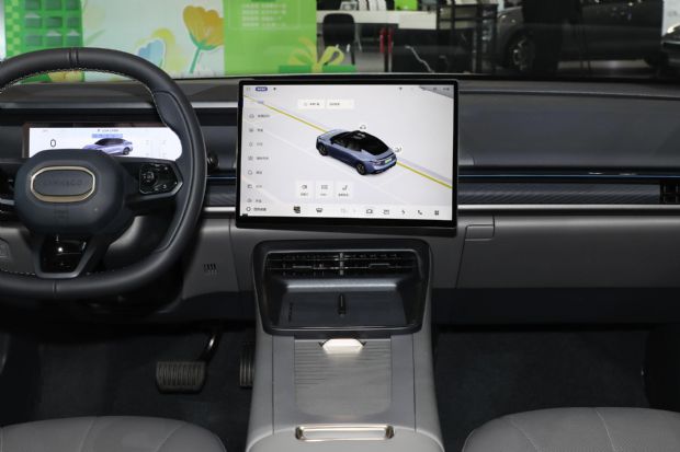内饰方面,新车搭载长方形的12.3英寸全液晶仪表盘和15.4英寸中控屏幕,中控屏幕拥有超窄边框设计和2.5K分辨率,搭载LYNK Flyme Auto魅族车机系统。方向盘采用双色设计,中间还有椭圆形的金属装饰,整体造型十分前卫。中控台下部搭载了手机无线充电板,后方的盖板下配备了两个杯架。此外,新车还搭载龍鹰一号芯片,并拥有92英寸无界AR-HUD和AR实景导航。