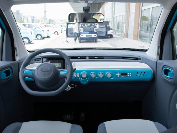 内饰配色方面,奔腾小马提供沙滩金、气泡蓝、天黛青、山茶绿、蜜桃粉等5款清新内饰。新车整体造型采用简洁富有趣味性的设计,控制功能主要通过物理按键来操作,整体造型类似游戏机手柄样式。该车取消了中央扶手设计,变速箱旋钮位于中控台,前排座椅之间更为通透。刹车踏板采用音乐播放软件的“暂停”符号设计,电门踏板采用游戏中的“加速”符号,赋予开车更多游戏乐趣体验。此外,该车后备厢容积为81L(后座放倒可扩展至734L)。