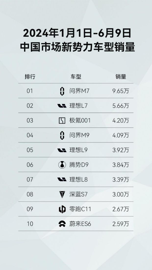 作为中国高端豪华SUV市场的销量、质量双冠王,截至6月9日,问界新M7系列车型在本年度内的累计销量已达到9.65万台。这一佳绩不仅稳坐中国市场新势力车型销量TOP 1宝座,更是以显著优势拉开了与竞争者的差距,其销量几乎达到了第二名与第三名的销量总和,彰显了强大的市场影响力和消费者的高度认可,助力鸿蒙智行家族销量持续向上。