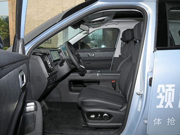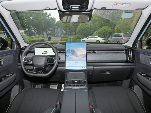 内饰方面,仍然是极简的设计风格,但比较注重材质的打造,包括配备14.8英寸悬浮式中控屏,并将内置8155芯片。三辐式多功能方向盘采用真皮包裹,前方配备液晶仪表以及HUD抬头显示。同时,整个中控台还设计有贯穿式的空调出风口。中控台下方有无线充电面板,下部有一个大尺寸的储物空间。
