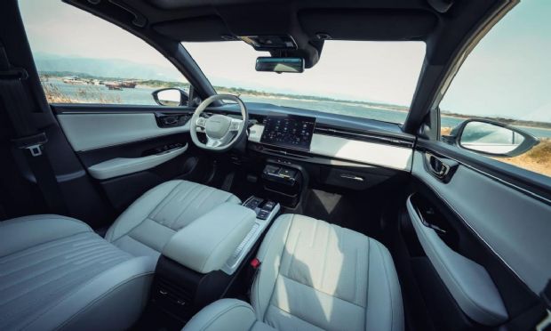 e:NP2极湃2的空间优势不仅仅体现在后备厢,其前排的置物空间同样可圈可点。依托纯电车型不需要安装变速箱的特性,e:NP2极湃2去掉前排的中控台,形成贯通式的前排空间,同时手机充电面板、充电接口以及杯架均设计成了隐藏式结构,在尽可能保留传统中控台的储物能力与功能性,也实现了主副驾灵活移动,解决了停车位狭窄一侧无法开门上下车的问题。