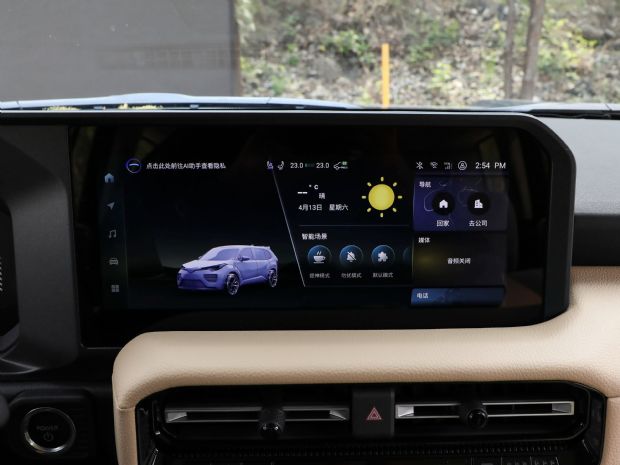 动力方面,新车全系标配2.4T发动机,并搭配电机组成混动系统,系统综合最大功率为243kW(330马力),最大扭矩为630N·m,匹配8AT变速箱和全时四驱系统。扭矩优势使其在中后两把差速锁和非承载式车身的应用下具备更强的脱困能力,而混动系统则保证了日常代步时的经济性。车身尺寸方面,新车长宽高分别为4925mm、1940mm和1910mm起,轴距为2850mm。