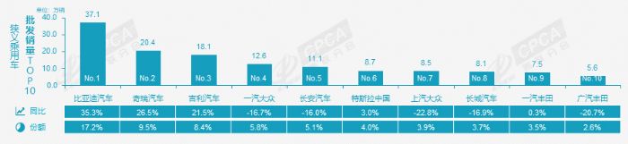 一汽大众、长安汽车8月批发销量均超过11万辆,分别以12.6万辆和11.1万辆的销量排名第四和第五位。