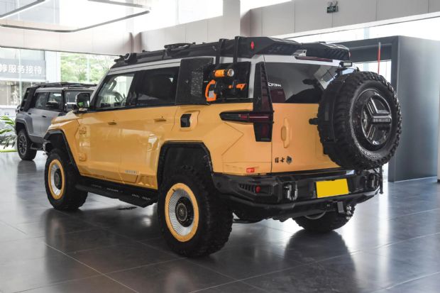 外观方面,其外观沿袭猛士家族“雄浑”设计理念,前脸采用直瀑式中网格栅,发动机盖保留射灯座,可安装高位射灯。新车还提供个性化的定制方案,在发动机盖、车顶和侧梯架等处大量运用了碳纤维材质,整车碳纤维覆盖率达到22.3%。车头还配备T-MAX电动绞盘,能够提供12500磅拉力。