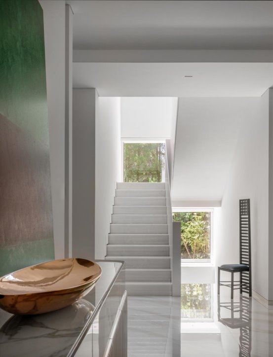 针对外部的建筑进行重塑,三级叠落,犹如大地捧出的艺术杰作。那层层叠落的轮廓,仿佛是岁月沉淀的智慧,诉说着建筑与自然的对话。将自然与景观被巧妙地引入室内,虚化了室内外的边界。当阳光透过大大的落地窗洒进屋内,那温暖便是大自然最深情的拥抱。窗外的绿树繁花,不再是遥不可及的风景,而是生活中最动人的画卷。“采菊东篱下,悠然见南山。” 在这里,我们无需远行,便能拥有那份与自然相拥的悠然。