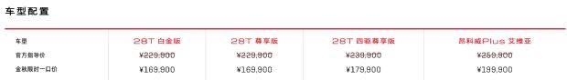 通过官方配置表来看,新增车型在配置方面完全看齐28T尊享版,区别在于28T白金版取消了48V电机,从而0-100km/h加速时间缩减至8.0s(28T尊享版为8.1秒),油耗提升至7.88L/100km(28T尊享版为7.43L/100km)。