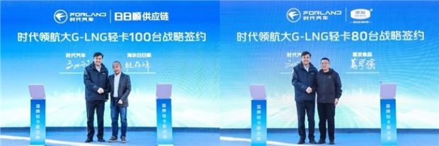 领航大G-LNG一经上市便引起大客户和广大卡友的极大关注。活动现场, 时代事业部营销副总裁刘刚代表时代汽车与大客户海尔日日顺青岛分公司、山东惠发食品战略签约180台车辆,批量采购的领航大G-LNG必将以极致TCO助力签约伙伴在当前低迷的货运市场中取得先机,逆势而上。