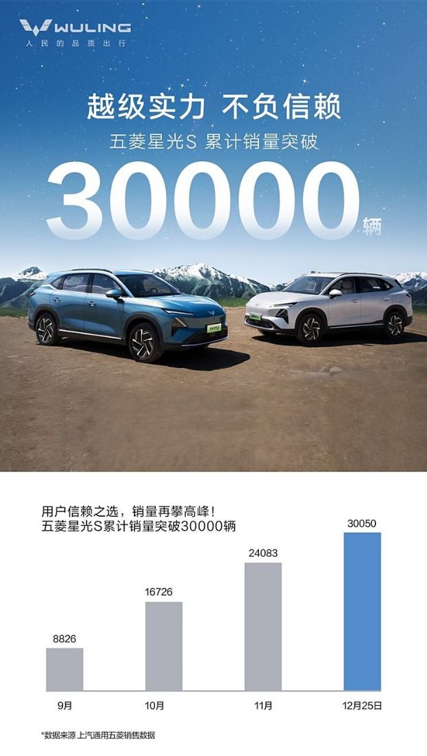 上汽通用五菱日前宣布,五菱星光S累计销量已突破30000辆,2024年底前购车可享2.7万元置换补贴。