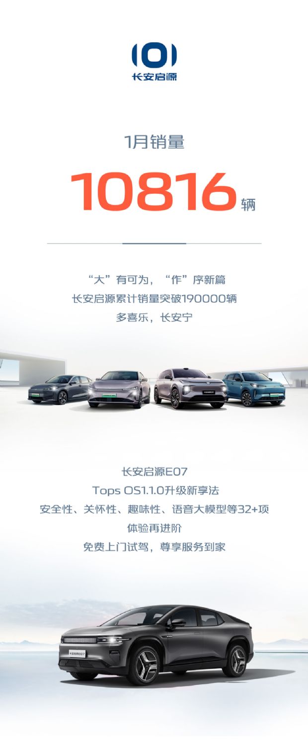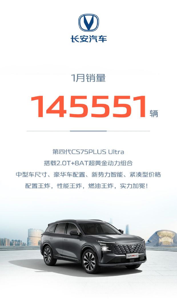 从旗下各品牌销量来看,1月份销量最高的依然是长安汽车品牌,其销量达到145,551辆;长安启源品牌1月销量为10,816辆,品牌推出至今累计销量突破19万辆。