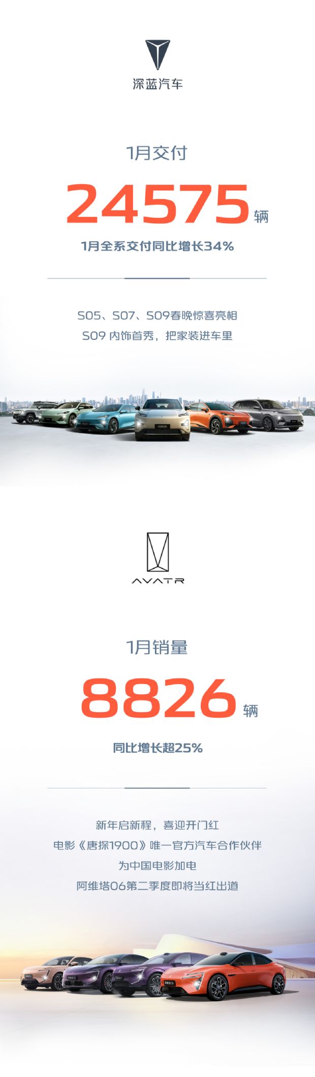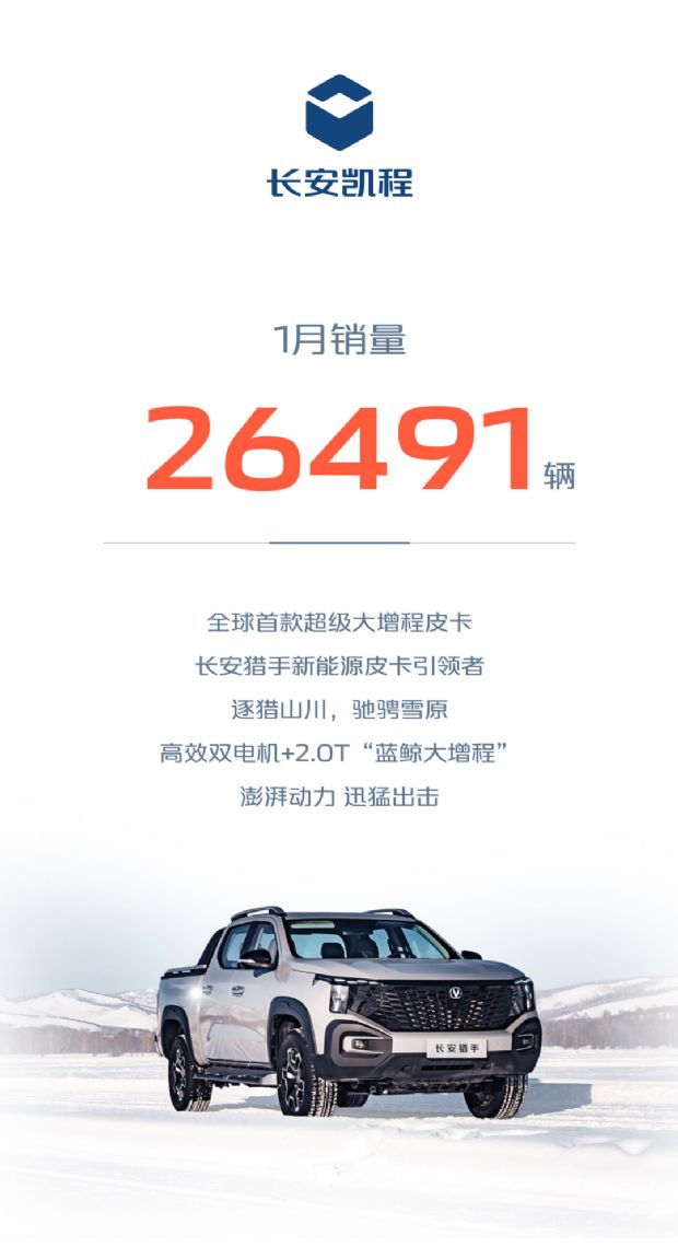 此外,长安凯程1月销量为26,491辆;深蓝汽车交付量24,575辆,同比增长34%;阿维塔品牌1月销量8826辆,同比增长25%。