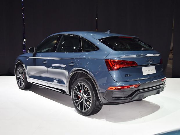 从车身侧面看,新车配备的大尺寸多辐轮圈,搭配红色刹车卡钳,视觉冲击力极强。Q5L Sportback车型独有的溜背设计,更是将运动感展现得淋漓尽致。车辆的尾灯内部造型充满科技感,点亮后效果十分酷炫。贯穿式的镀铬饰条,不仅连接了两侧尾灯,更在视觉上拓宽了车尾的宽度,让整车看起来更加大气稳重。在车身尺寸方面,新车长宽高分别为4770/1893/1667mm,轴距达到了2907mm,宽敞的空间为驾乘者提供了舒适的体验。此外,新车全系新增轮圈防盗螺栓,为车辆的安全保驾护航。
