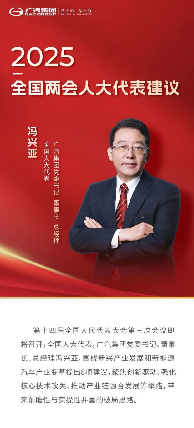 3月3日,广汽集团公布了董事长冯兴亚在全国两会期间提出的建议,其中包括了关于促进电动汽车产业与载人电动垂直起降航空器产业融合发展、促进人形机器人产业发展、加大新能源汽车换电模式推广力度等八项建议。