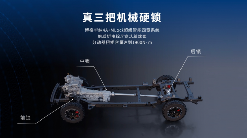 山海炮穿越版标配三把机械硬锁,拥有博格华纳4A+MLock超级智能四驱,分动器扭矩容量高达1900N·m,电磁控制,响应更快,机械锁止更可靠,脱困救援游刃有余;标配经济、运动、泥地、沙地、岩石、专家等9种驾驶模式,以及坦克转弯、蠕行模式、360环视+透明底盘、越野信息显示等智能越野配置,从容应对野外的一切挑战,让你看到别人无法企及的风景