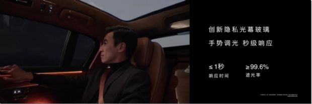 在场景智能体验上,尊界S800同样亮点频出。智能追光系统通过后排独立灯光设计,可根据乘客姿态变化自动调节光源,阅读、取物等场景下均能获得舒适照明;智能隐私光幕玻璃响应时间小于1秒,遮光率大于99.6%,配合手势调光功能,让后排瞬间成为私密空间;独立音区技术通过头枕音响与自适应算法,实现前后排声场物理隔离,彻底解决传统豪车“音响共享”的痛点。