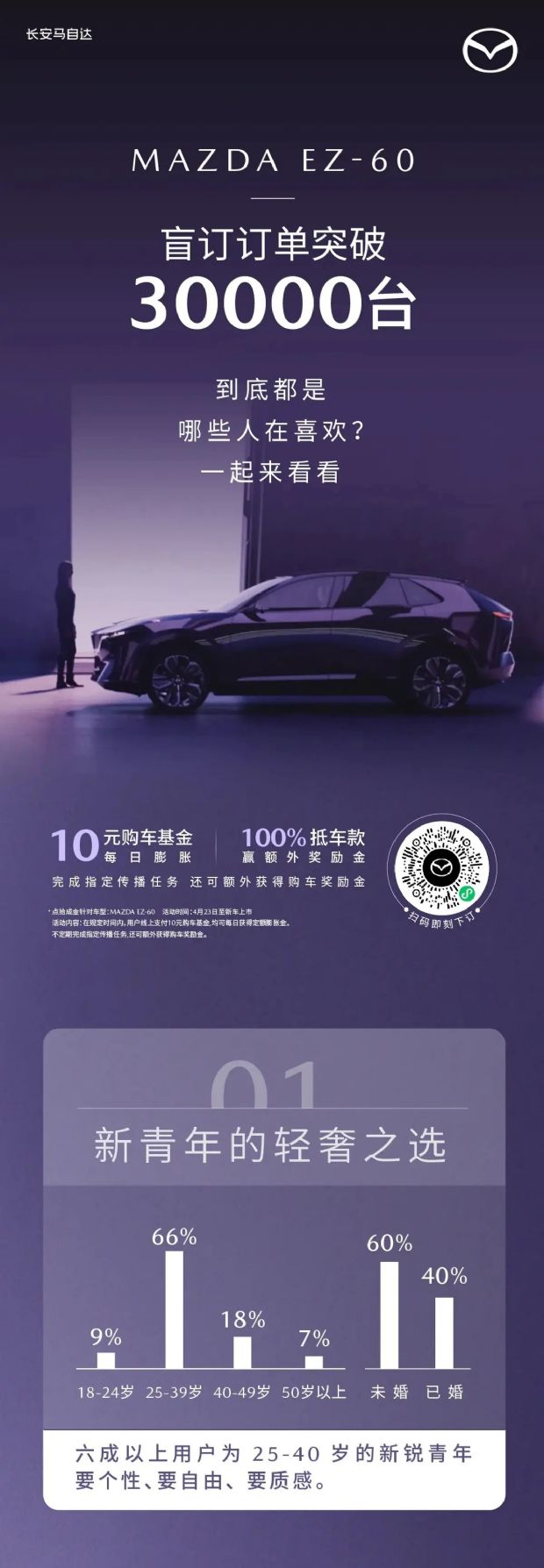 6月24日,长安马自达带来重磅喜讯——旗下备受瞩目的新能源车型EZ-60盲订订单成功突破30000台!新车基于长安EPA平台打造,提供纯电和增程双动力版本,预计9月底正式上市,无疑为新能源汽车市场投下一枚“重磅炸弹”。