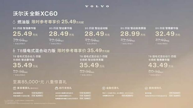 定位豪华中型SUV的沃尔沃XC60,在全球市场中,依靠产品力与性价比的优势,自2008年首发到现在已经赢得了超过260万用户的信赖。面对当下竞争激烈的市场,XC60也开启了换新之旅,在6月26日,全新XC60正式上市,燃油版和插混版的官方限时参考尊享价分别为25.49万起和35.49万起。