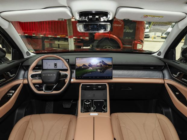 内饰部分,瑞虎8 PLUS乘风版打造全新环抱式座舱,78.9%的软包材质带来舒适触感,64色双氛围灯灯带搭配时尚木纹饰板,营造出温馨浪漫的车内氛围。15.6英寸2.5K中控屏与10.25/12.3英寸液晶仪表,搭载雄狮智云5.0车机系统,支持语音助手、Carplay/HUAWEIHiCar手机互联,操作便捷。此外,