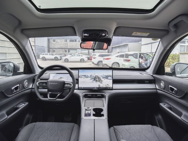 座椅布局上,瑞虎8PLUS乘风版采用5+2的7座布局,三排座椅旁的D柱内侧配备扬声器,让每位乘客都能享受优质音响效果。三排座椅两侧贴心设计的水杯槽,细节之处尽显关怀。车内32处储物空间,二三排放倒后,后备厢容积可达1930L,满足日常出行与储物需求。动力方面,新车搭载鲲鹏动力1.6T+7DCT动力组合,发动机最大功率145kW、峰值扭矩290N・m,匹配7速湿式双离合变速箱,动力平稳且燃油经济性出色。