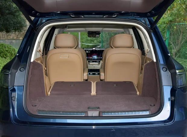 从实拍图可见,前两排座椅后方配备HUAWEI MagLink接口,通过磁吸支架可拓展后排设备,结合鸿蒙座舱实现多屏联动交互。第三排上方的激光投影仪与第二排座椅上方的升降式投影幕布组成投影系统,轻松打造影院级观影体验。第二排全新零重力座椅更是亮点,能最大化满足人体放松需求,提升乘坐舒适度。