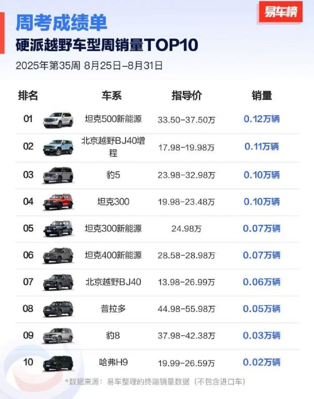 在竞争日趋白热化的SUV市场中,一款新车需要多久才能赢得市场认可?全新坦克500的答案令人惊叹——上市仅5天,便以1298辆的交付成绩斩获易车平台硬派越野车型周销量榜首。这一成绩不仅印证了全新坦克500强大的市场号召力,更一举打破了中大型插电混动SUV市场格局。