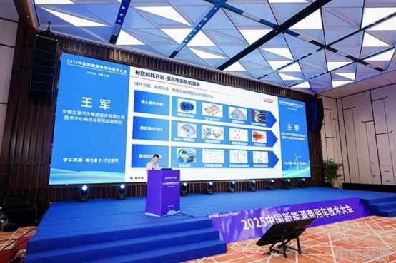 安徽江淮汽车集团股份有限公司技术中心商用车研究院副院长王军发表了《打造新能源商用车极致能耗,助力客户商业成功》的主题演讲。他指出,商用车市场竞争已转向存量阶段,降低用户运营成本成为关键。江淮汽车聚焦新能源商用车极致能耗,通过低风阻设计、高效电驱桥、智能热管理及SiC电控等核心技术,实现每度电行驶4.1公里的能效突破。全新轻卡平台融合L2智能驾驶与超低滚阻系统,助力客户全生命周期TCO最优,以技术赋能商业成功。
