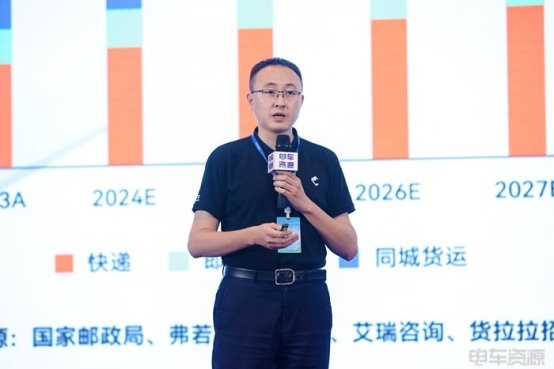 地上铁新能源车服网络销售渠道中心副总经理朱巍峰发表了《地上铁城际场景解决方案》的主题演讲。他指出,城际物流轻卡市场潜力巨大,新能源渗透率正快速提升。同时,他强调,针对不同经济圈运营特点,地上铁打造“专属车辆+服务解决”方案,进一步帮助用户降本增效。