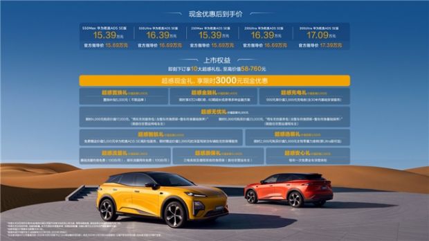 此次区域上市试驾发布会,全新深蓝S07共发布5款车型,优惠后到手价格15.39万元至17.09万元,即刻下订更享10大超值礼包,至高价值58760元。