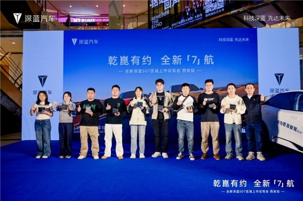9月20日,深蓝汽车在益田假日世界购物中心成功举办“乾崑有约,全新「7」航——全新深蓝S07区域上市试驾会”。活动现场,全新深蓝S07凭借卓越性能与创新科技,搭配精心设计的创意打卡环节,为所有嘉宾带来了一场难忘的未来驾享之旅。