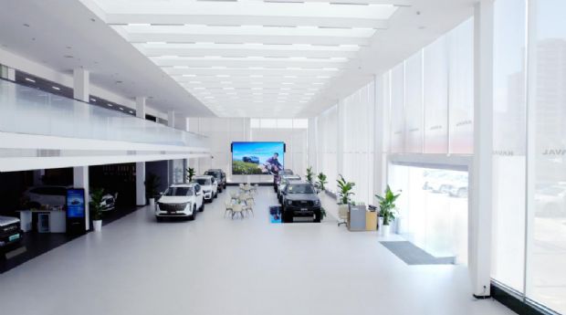在空间营造上,哈弗追求的是“沉浸式体验”而非简单装修。建筑外观采用简约通透的设计风格,夜间三色光带勾勒出独特轮廓,让门店成为城市中的一道地标;内部动线经过科学规划,线性展车排列搭配360°全景观车区域,人车动线清晰分离,避免了传统展厅的拥挤混乱;灯光系统更是暗藏巧思,“大面积软膜面光源”能精准还原车漆质感,让用户看清车辆每一处细节,客休区则采用温馨的间接照明,搭配环保材质和灵活组合的家具,从单人位到围合式布局,满足不同用户休息、交流的需求,营造出“归家式”的舒适感。