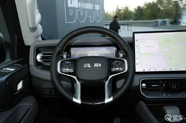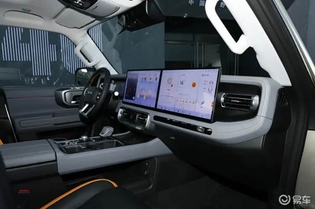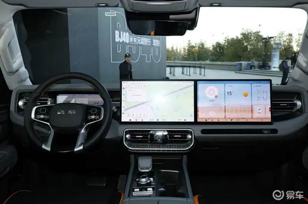 进入车内,BJ40 增程元境智行版的内饰设计以智能舒适为核心,双15.6英寸高清液晶屏,支持主副驾双屏联动,配360度全景影像全屏显示,可实时扫清车身周围盲区,停车、越野时安全感拉满。车机搭载高性能骁龙8155芯片,配合16GB 运行内存+128GB存储空间,即便同时开启导航、音乐、视频,车机操作仍丝滑无卡顿,彻底告别传统硬派SUV“车机卡顿”的痛点。此外,车顶配备的1.2 平方米超大全景天窗,不仅提升车内采光与通风效果,更像 “移动取景框”,自驾时可将雪山、星空等风景引入车内,兼顾实用性与浪漫感。