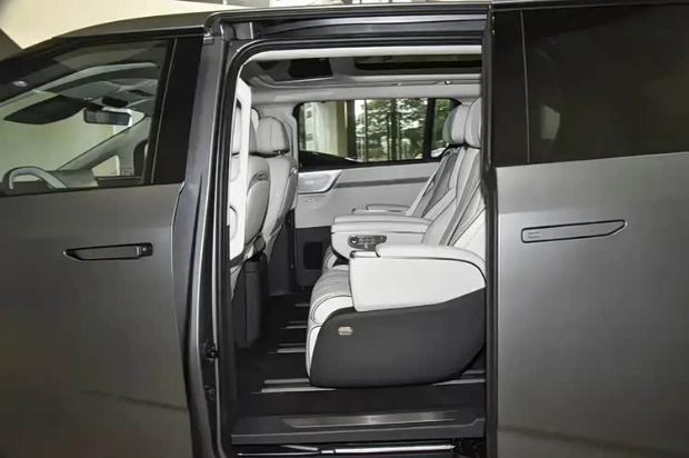 车辆二排提供双零重力座椅,并在扶手内侧配备座椅功能调节按键,并新增专属安全气囊。此外,新车还将配备21.4英寸二排娱乐屏。车辆三排支持座椅调节、靠背折叠、翻转收纳,可支持4/6翻折收纳。