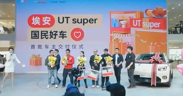 11月25日,广汽埃安今日官方宣布,由京东、广汽集团、宁德时代联合推出的埃安UT super交付全面开启,首批车主交付仪式在广州车展广汽埃安展台举行。新车搭载“广汽华为云车机”技术,配备500km续航大电池,支持99秒换电,电池租用购车价4.99万元,整车购买价8.99万元。