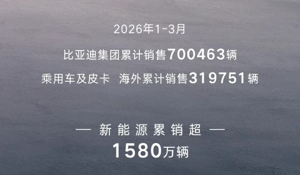 4月1日,比亚迪正式发布2026年3月及一季度销量数据。3月集团共销售汽车300222辆,重夺中国汽车厂商销量冠军。其中,乘用车295693辆,较2025年3月的…
