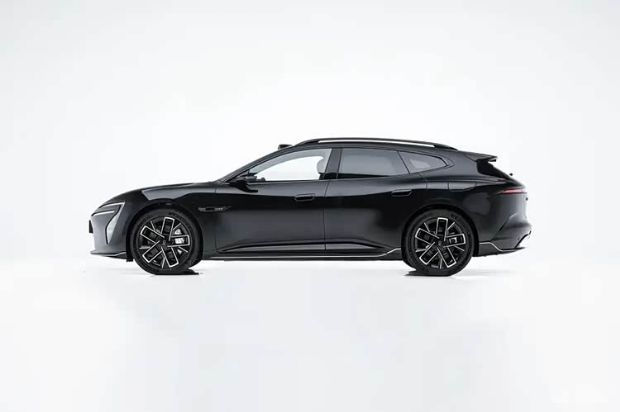侧面来看,因采用了旅行车的车身结构,阿维塔06T拥有一张漂亮的侧面。新车采用半隐藏式门把手设计,并搭载造型动感五辐轮圈。