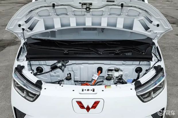 外观方面,新车采用了封闭式前格栅设计,中间的五菱LOGO则是充电口盖板,两侧的大灯组采用较为狭长的设计,前包围两侧还带有三角形的通风开口装饰,前包围中间则是梯形样式的散热开口。