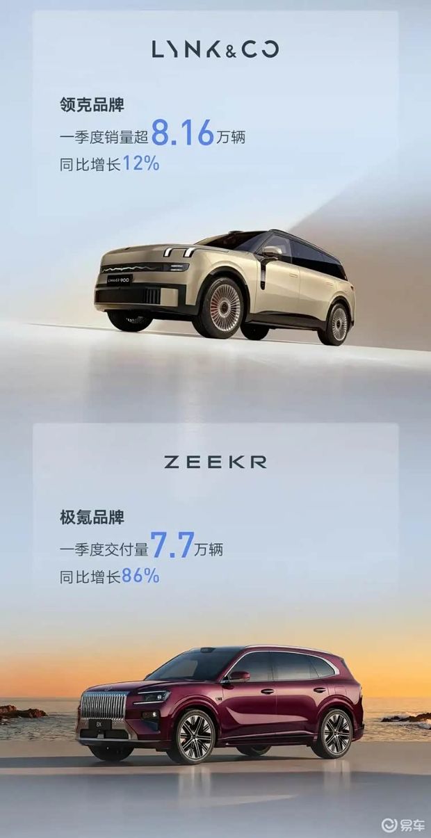 吉利控股集团第一季度总销量93.8万辆 新能源销量49.1万辆