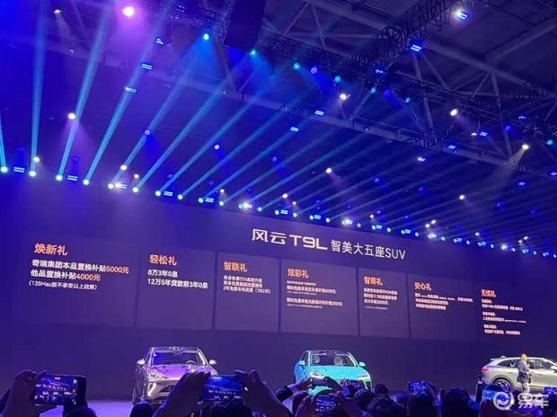 4月13日,奇瑞风云T9L正式上市,官方指导价区间12.99-18.69万元;抢先置换价区间12.59-18.29万元。风云T9L定位一款大五座SUV,配备猎鹰700+智能辅助驾驶系统、地平线征程6P芯片等。动力方面搭载鲲鹏超能电混CDM。