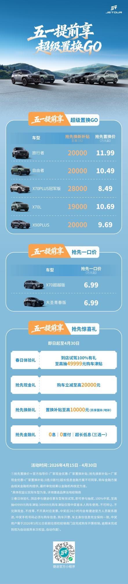 不用等到黄金周!捷途置换至高省20000元