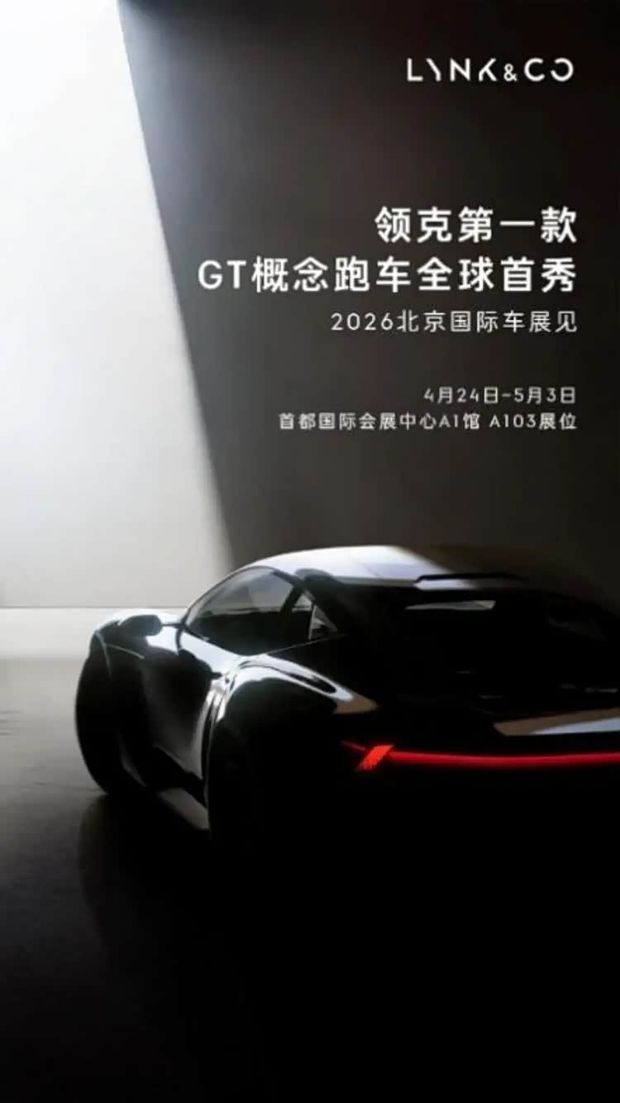 4月20日,领克宣布,品牌首款GT概念跑车将于2026北京国际车展进行全球首秀。从预告海报的车型线条来看,新车呈现纯正双门GT跑车姿态,宽体肌肉感与标志性尾灯极具辨识度和攻击性。