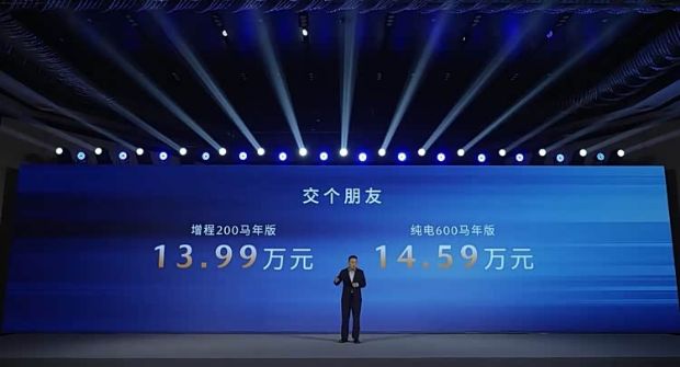 动力方面,增程动力车型搭载1.5L增程器,增程器最大功率70kW,驱动电机峰值功率为190kW,峰值扭矩达到290N·m,CLTC纯电续航达到200km。纯电车型搭载磷酸铁锂电池,单电机后驱,最大功率190kW,峰值扭矩为290N·m,CLTC纯电续航达到600km。