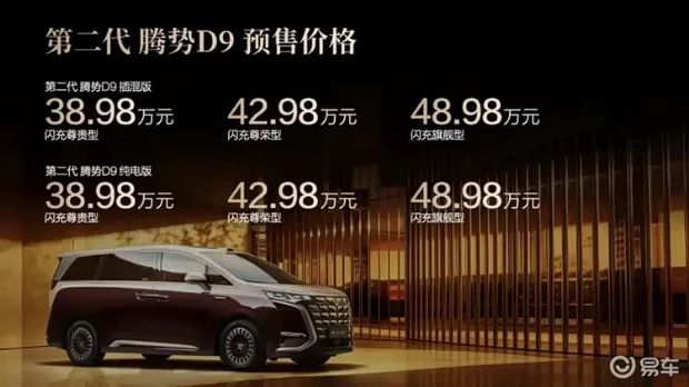 • 预售价38.98万元起 第二代腾势D9开启预售