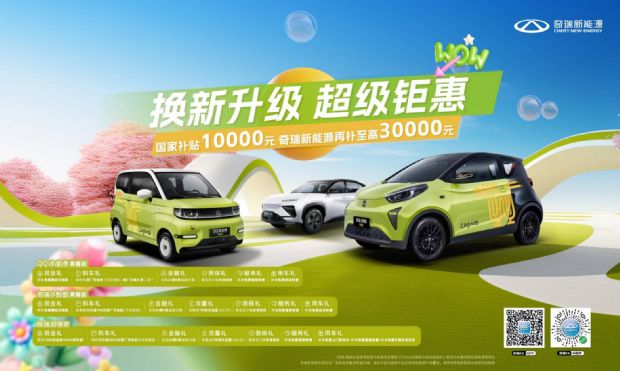 换新升级,嗨购不停。还没来得及参与此次嗨购活动的小伙伴们不用着急,现在购买奇瑞新能源汽车还享多重购车福利。除报废换新新能源享万元补贴外,购买奇瑞舒享家再享至高30000元综合优惠,购买奇瑞小蚂蚁青春版或QQ冰淇淋青春版再享至高10000元综合优惠,诚意满满,想要换新出行的朋友快来选购你的心仪爱车,一起开启美好快乐的出行新生活吧!