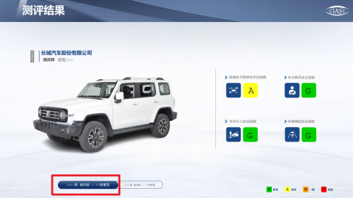 本次中保研抽验参加碰撞测试车型为2021款坦克300城市版我看型(入门级),在车内乘员安全指数、车外行人安全指数、车辆辅助安全指数中获得全 G(最优)成绩。力证坦克 300全线产品。