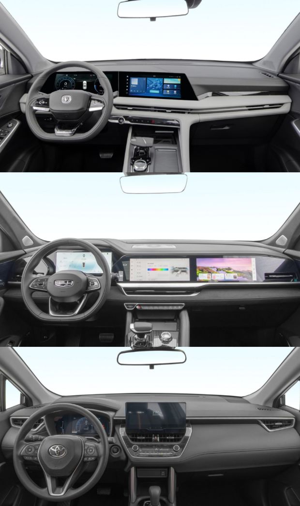 从左往右依次为第三代CS75PLUS冠军版、峰兰达双擎领先版、星越L长风版