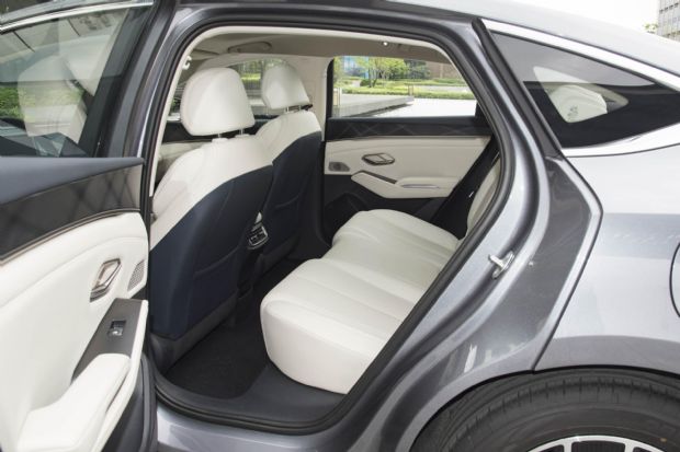 车身侧面来看,其腰线从前翼子板处贯穿至后门,使得车身更加修长。其采用溜背式设计,在整体稳重大气的同时,也增加了一些动感。我们还看到,新车采用了传统的门把手设计。
