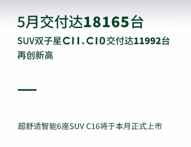 【零跑汽车5月销量快报】6月1日,零跑汽车官方公布了5月销量数据。数据显示,2024年5月零跑汽车共交付18165辆新车,再次登上月销18000+辆的历史高位。与去年同期的12058辆相比,同比增长50.6%;与上月的15005辆相比,环比增长21.1%。其中,SUV双子星零跑C11和零跑C10合计交付达到11992辆。