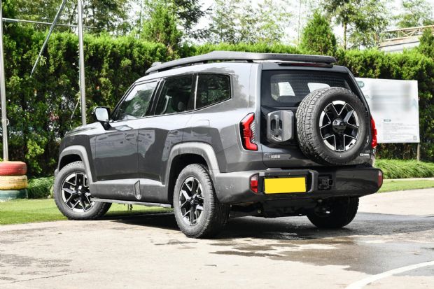 车尾部分,深蓝G318以“太空之门”为主题,坚实厚重的包围造型搭配全尺寸的外挂式备胎,硬派越野的车辆属性独具辨识度。此外,该车还将配备原厂拖车钩与高位刹车灯,进一步保障越野行驶安全,顶配车型还提供电吸尾门。车身尺寸方面,该车长宽高分别为5010/1985/1895(1960)mm,轴距为2880mm。