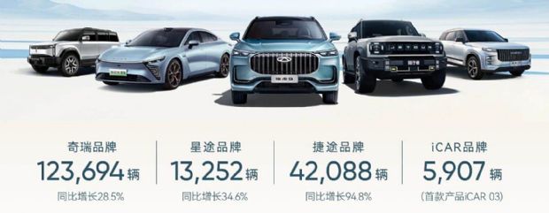 从具体品牌来看,奇瑞品牌依然是销售主力,6月份销量达到123,694辆,同比增长28.5%;今年上半年奇瑞品牌累计销量706,767辆,同比增长41.9%。