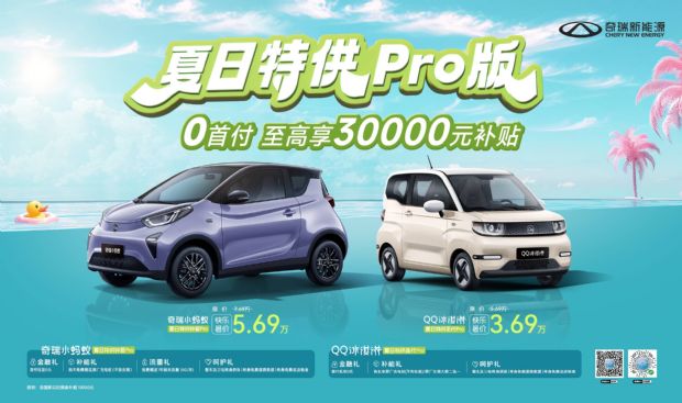 拒绝“烧烤”模式,清爽出行一夏。为给广大用户提供更轻松便利、舒适无忧的夏日出行新体验,奇瑞小蚂蚁&QQ冰淇淋不仅上新了夏日特供Pro版,更推出了0首付,至高享30000元补贴(全民优惠20000元+国家以旧换新补贴至高10000元)的钜惠福利,带来仅需5.69万元和3.69万元的快乐暑“价”,还享多重惊喜好礼,轻松开启夏日美好出行生活。